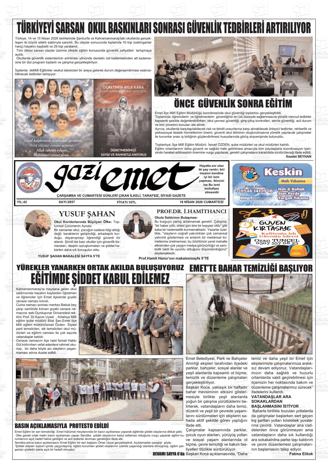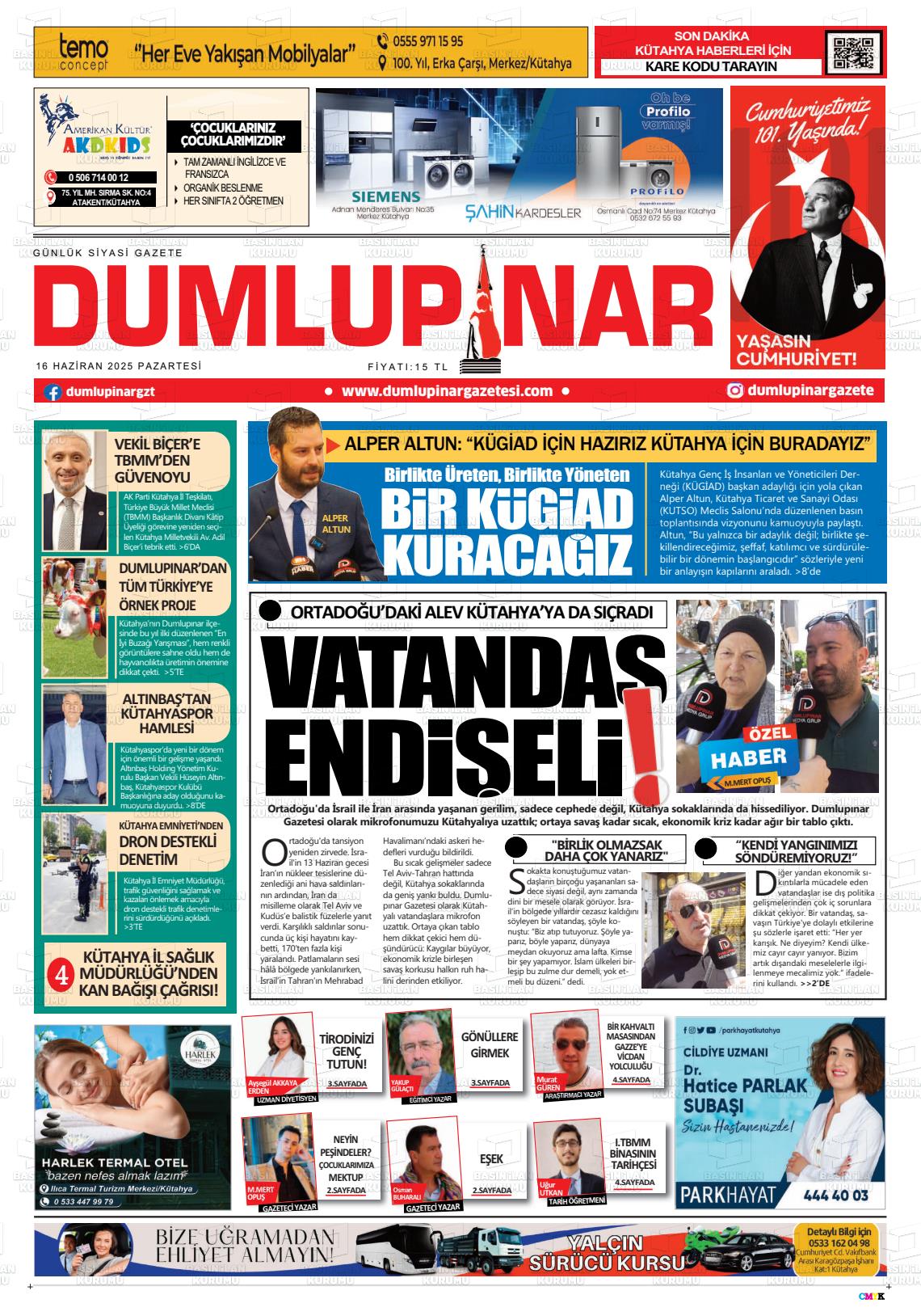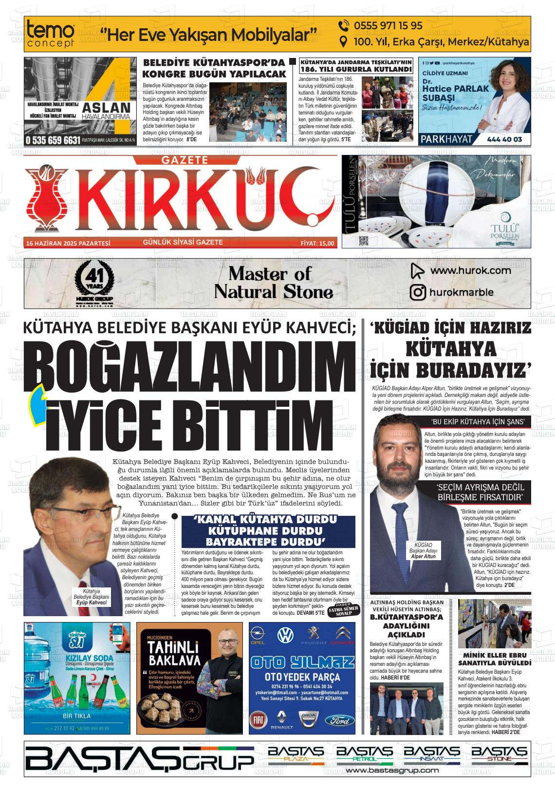 Kütahya Yerel Gazeteleri 18 Nisan 2026, Cumartesi Günü Manşeti